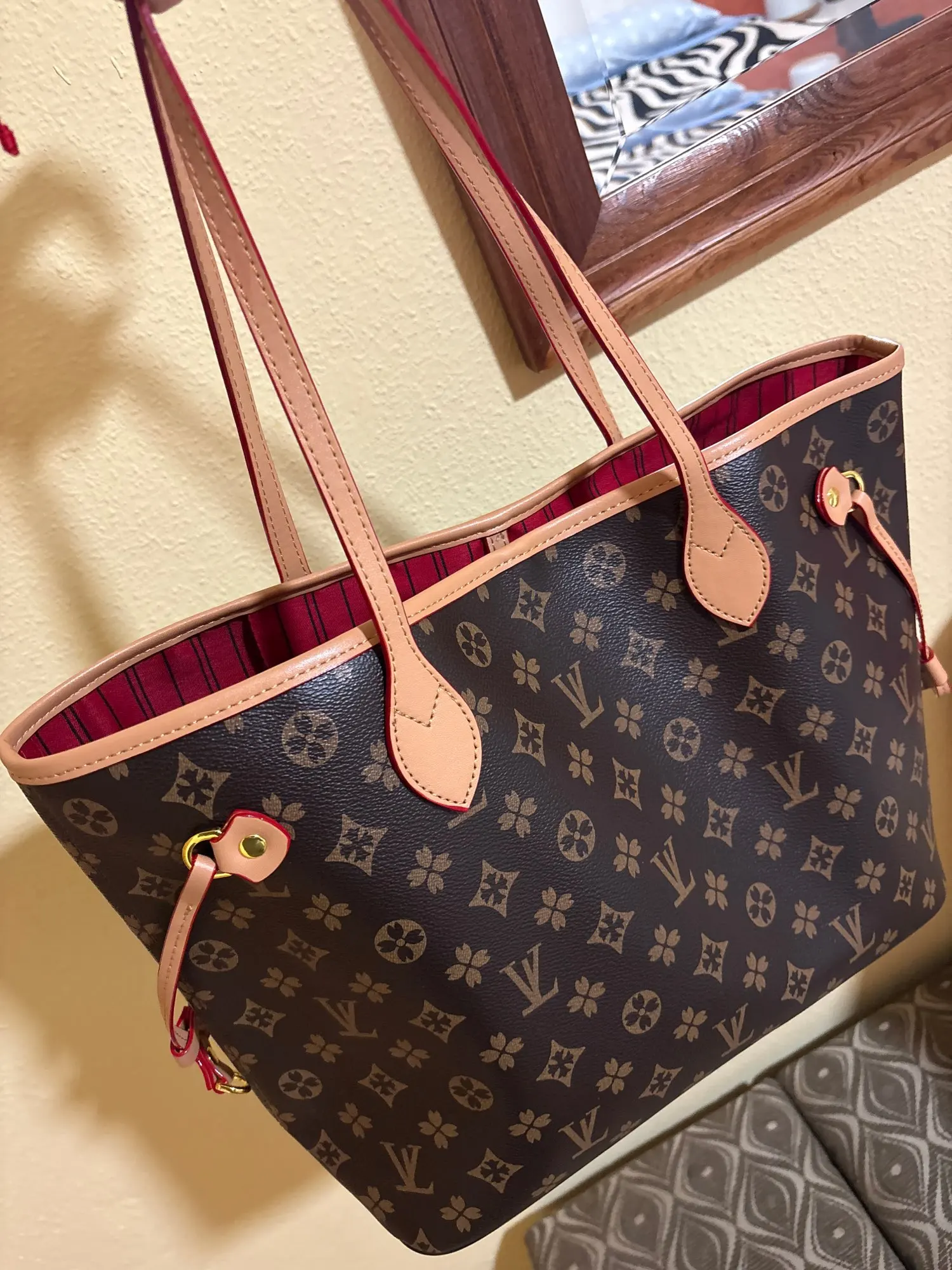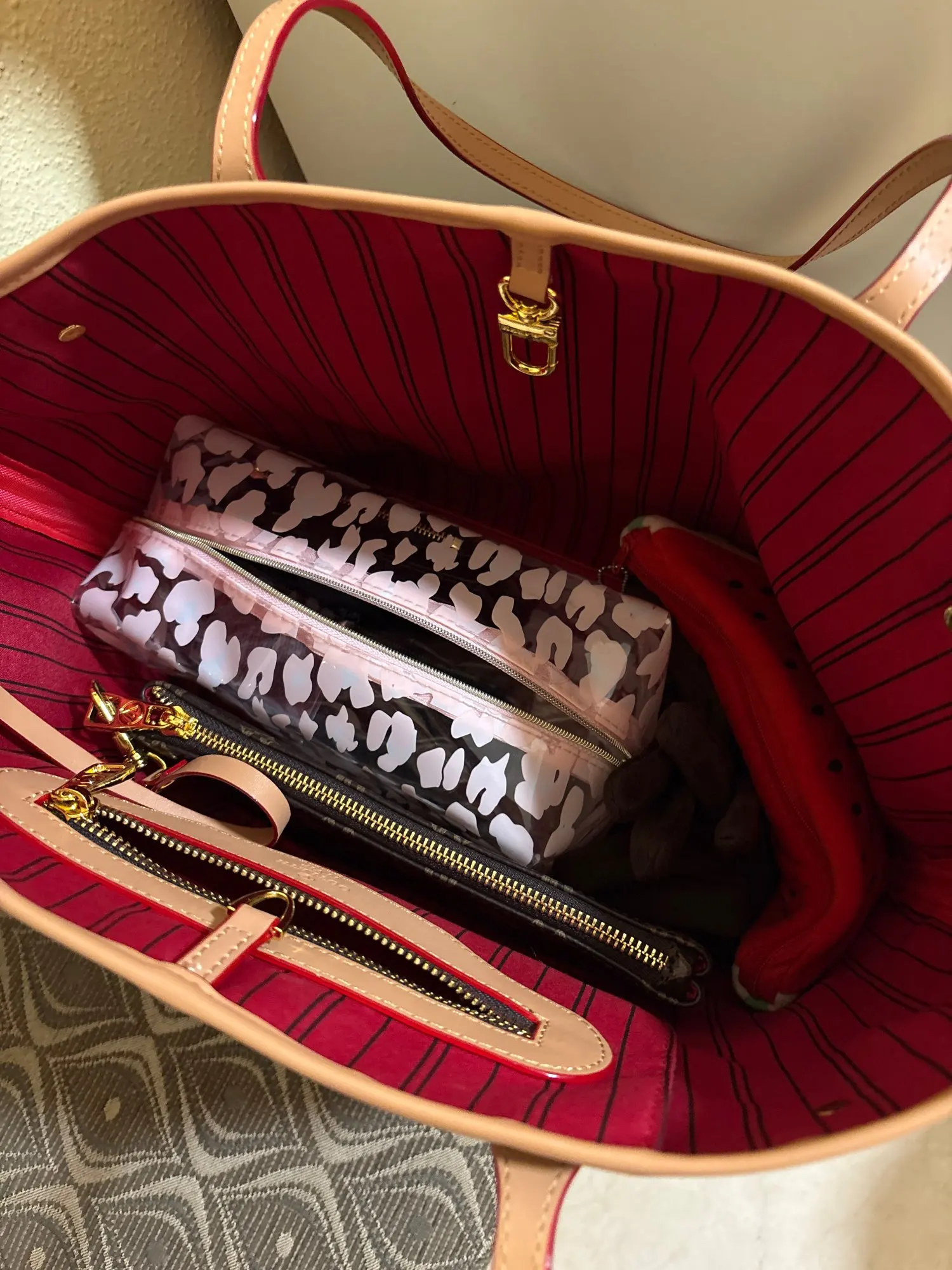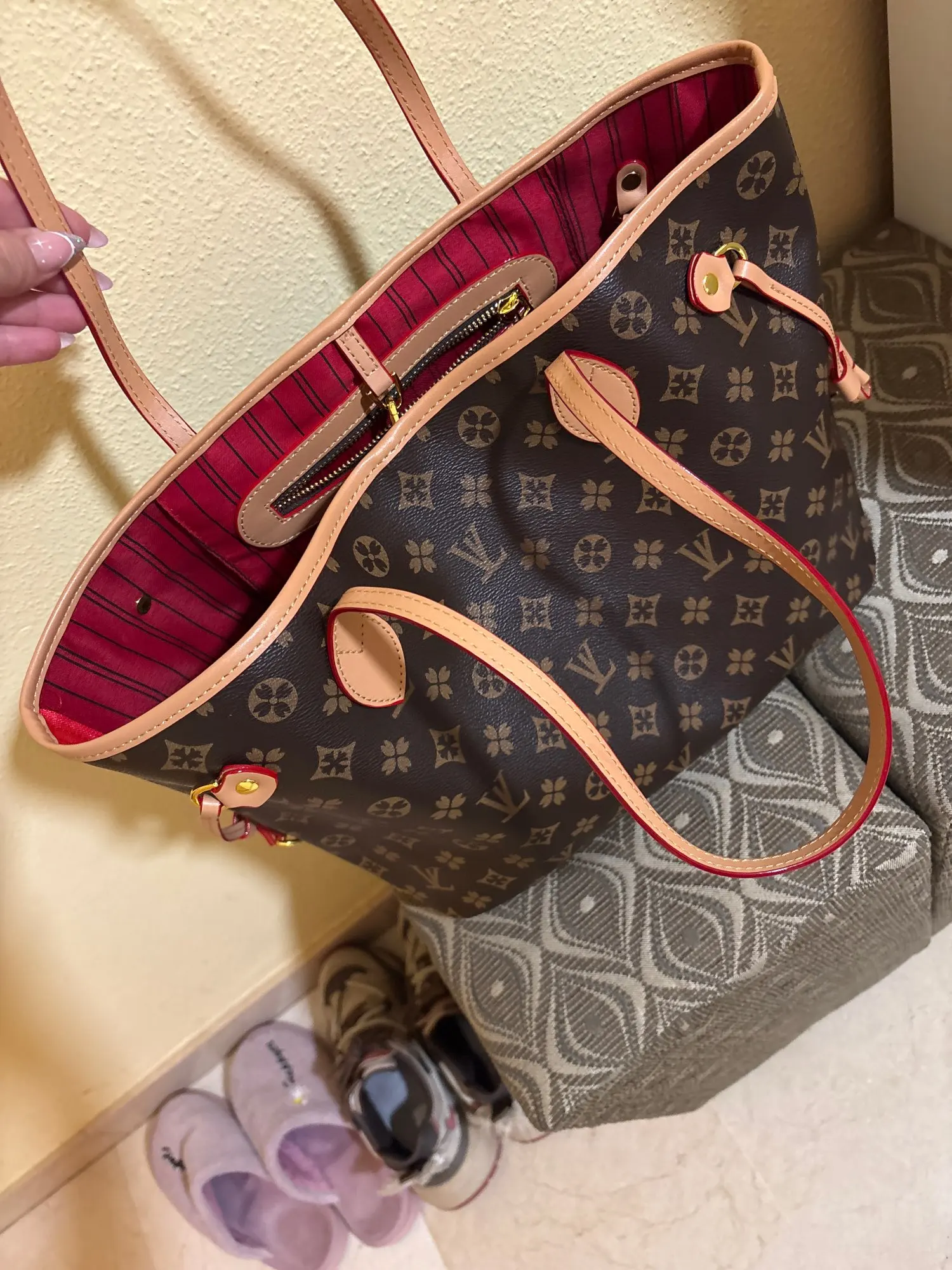 The Neverfull Bag comes in multiple sizes to suit different needs and lifestyles: PM (29 × 21 × 12 cm), MM (31 × 28 × 14 cm), and GM (39 × 32 × 19 cm). Each size is thoughtfully designed to offer the perfect balance between elegance and practicality, making it a luxury designer-inspired tote bag for women who appreciate timeless style.